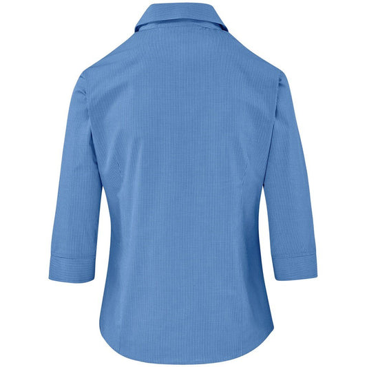 Ladies 3/4 Sleeve Micro Check Shirt - Light Blue