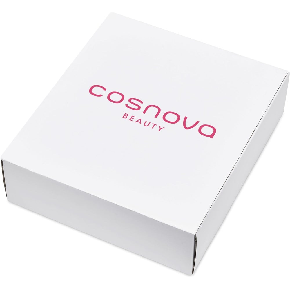 The box is 27 ( l ) x 23 ( w ) x 7.5 ( h ) cm, with a clean, white exterior and a natural kraft interior.